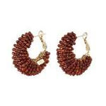 Gold plated earrings from our Izzia collection. They feature a thread of rust pearls that finely surrounds the entire structure of the earring. They are handmade in our Marseille workshop.
