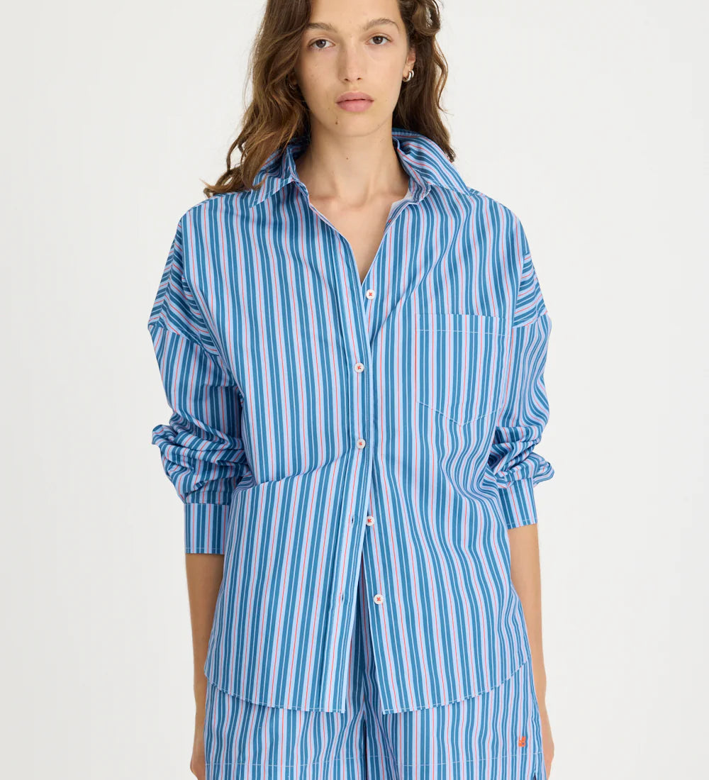 LMND Chiara Long Sleeve Shirt - Pinstripe Powder Blue/Navy