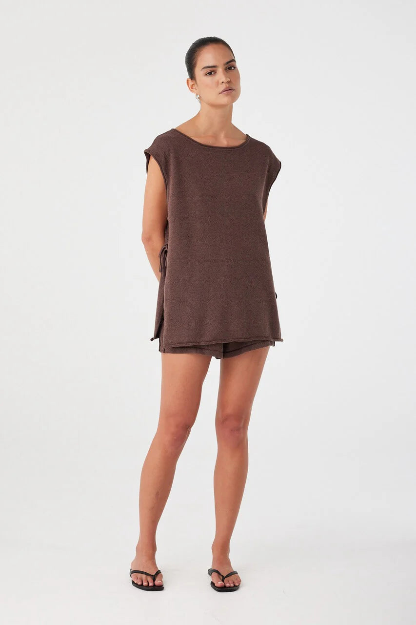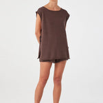 A relaxed-fit short with clean lines and subtle side panel detailing. Lightweight and soft with a drawcord waist for easy, warm-weather dressing.