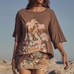 Spell Villa Tropic Oversized Biker Tee - Coffee