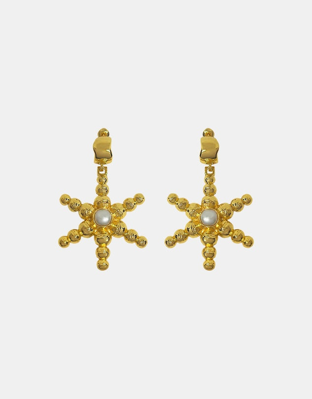 Radiant and symbolic, the Mountain & Moon - Thea Earrings in gold are a luminous ode to the stars that guide us across time and tide. Crafted in a glowing gold-tone finish and crowned with a lustrous freshwater pearl, this pair captures the elegance of celestial beauty through a modern, minimalist lens. Part of our Sirens Collection, Thea is inspired by the divine femininity and mythic symbolism of Greek heritage. The molten gold surface evokes sun-drenched relics unearthed by the Aegean, while the pearl’s soft shimmer mirrors the enduring grace of the sea.