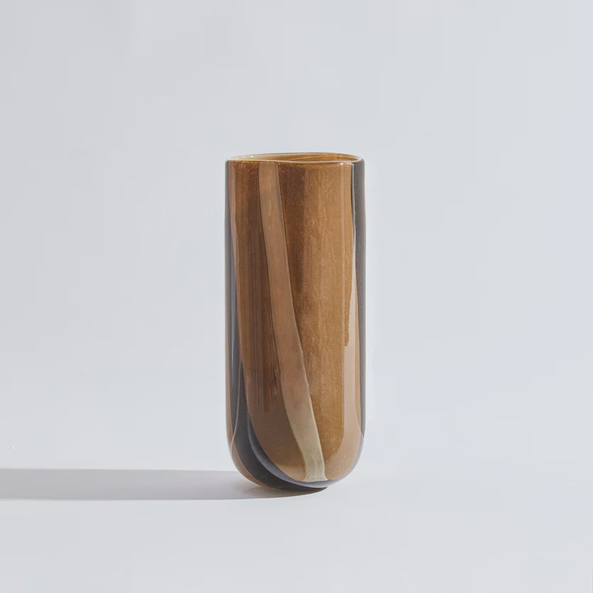 Elegant and playful in equal measure, the Candy Cylinder Vase collection brings a burst of modern artistry to your home styling. Handcrafted from coloured glass, each vase features softly blended tones and fluid stripe detailing that make every piece one-of-a-kind. The Khaki exudes organic warmth, Teal offers a refreshing pop of colour, Chocolate adds a touch of rich sophistication, while Pink brings a joyful vibrancy to any space. With their sleek cylindrical form and glossy finish, these vases are perfect for displaying statement stems or standing solo as sculptural décor.