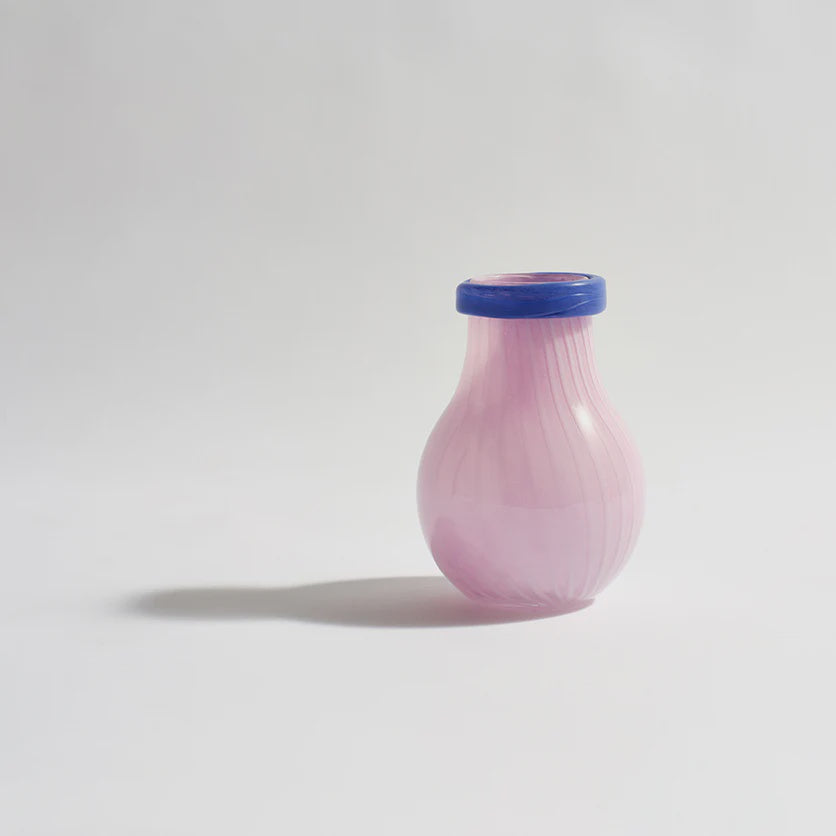 The Frances Vases are where form meets function in exquisite harmony. Featuring a subtle tonal pinstripe design complemented by a contrasting solid-colored rim, each vase is made entirely of coloured glass and is as practical as it is stunning. Available in three elegant colourways, these vases are ideal for effortlessly arranging fresh flowers—simply unwrap and display. Sophisticated and versatile, the Frances Vases add a refined touch to any room.