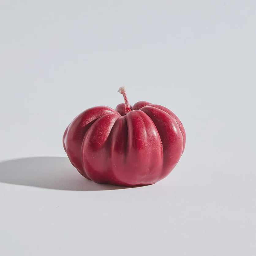 Brighten your day with fruity joy. Hand-crafted in an heirloom-tomato shape richly detailed with natural curves, this candle is infused with a lush scent that evokes balmy summer nights in the garden. It effortlessly combines visual charm with an invigorating, garden-fresh aroma creating a stunning decorative piece that delights the senses from first glance to the final burn.