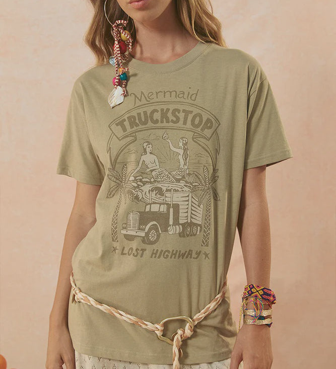 Spell Mermaid Truckstop Biker Tee - Khaki