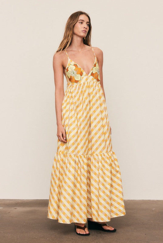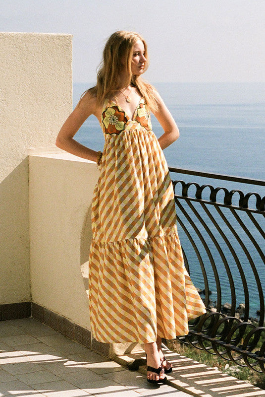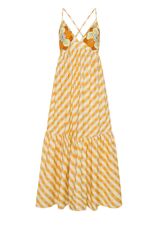 A best-selling silhouette reimagined in sunset hues, the Gingham Slip Dress is crafted from mid-weight cotton with embroidered appliqué detailing. Featuring a fitted bodice, full skirt and gathered back, it flatters with ease and movement. Made from natural fibre for breathable comfort, it’s timeless, feminine, and destined to sell out fast.