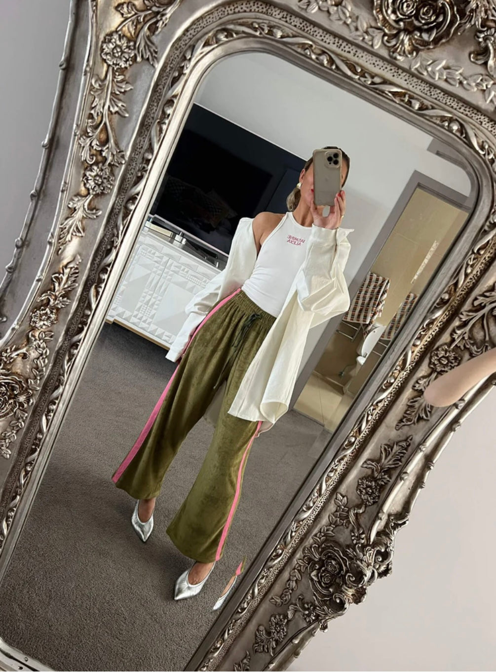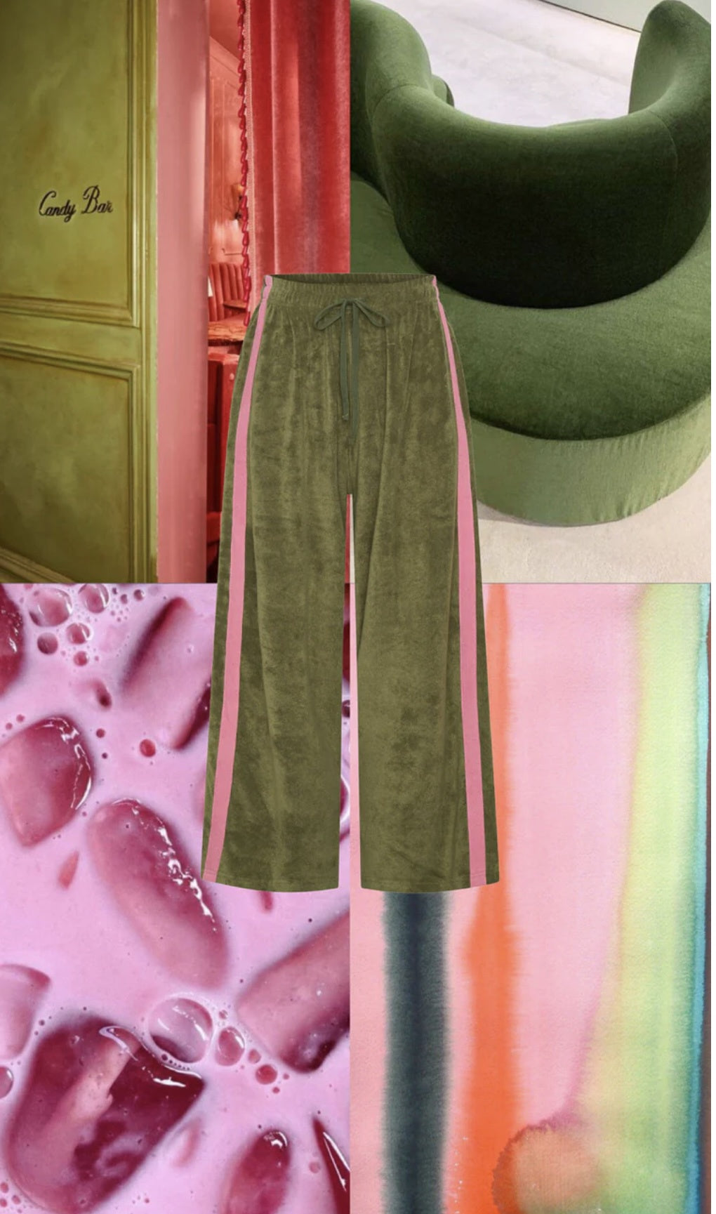 La Boheme Girls Viva Terry Pant - Olive & Pink