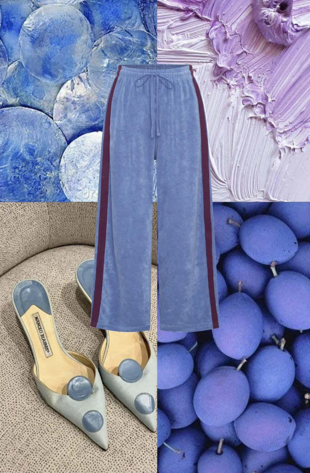 La Boheme Girls Viva Terry Pants - Cornflower Blue & Plum