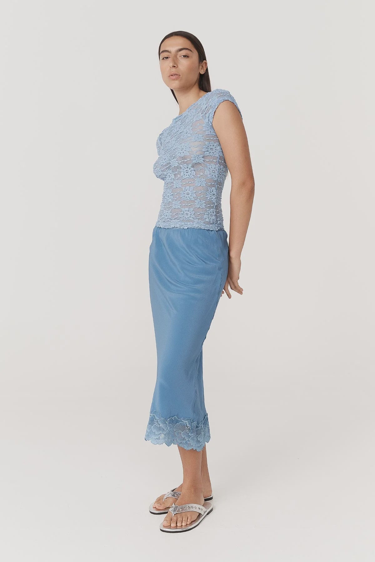 Lace midi slip skirt