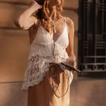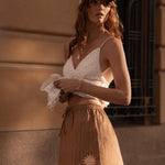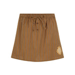 The Off Duty Mini Skirt in Caramel Cafe is your go-to piece for effortless, laid-back style. Crafted from 100% organic cotton, this unlined mini features a front button placket, elastic waist with tie detail, and cheeky side splits for movement and attitude. Delicate hem applique and a frilled back pocket add playful character, while the relaxed silhouette keeps you comfortable whether you're running errands or embracing weekend vibes.